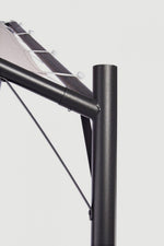 poteaux ø58mm, traverses et toit ø42mm. Feuille de polyester 180gr/m2.