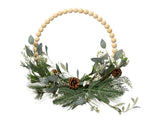 Guirnalda moderna con bolas de madera brillante, piñas y eucalipto para interiores H 10 x Ø 40 cm