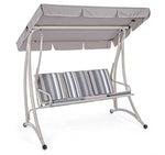 Rocking chair trois places en acier Ivoire GRELY 190x120x h185 cm Caractéristiques Structure d'acier Couleur ivoire, revêtement en poudre (polyester) Poteaux diamètre 5x2.8x3 cm Toit en polyester 180gr/m2 Assise en textilène 2x1 avec rembourrage en...