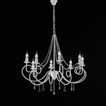 Lustre fer blanc huit lumières déco shabby et strass 80x h75 cm