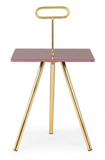 Structure en acier avec finition plaquée laiton, plateau en verre trempé. Jambes à assembler. Tailles = 35a - 35b - 63h
