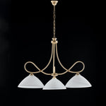 Lustre fer décapé ivoire trois lumières abat-jour verre blanc albâtre 78x h65 cm