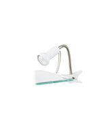 La lampe à pince FABIO de la marque EGLO a une structure en métal et polycarbonate de couleur argent. La pince vous permet de positionner la lampe selon vos besoins, tandis que le bras articulé vous permet d'orienter le diffuseur blanc vers un point d'intérêt précis. L'interrupteur marche/arrêt est inclus.