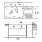 Évier de cuisine 2 bacs avec égouttoir en acier monté à droite 50x120 cm