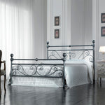 Lit double en fer avec pied de lit Noir Argent NONNA 173x212x h126 cm