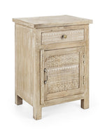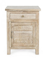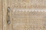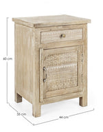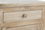 struttura in legno di mango con decorazioni intarsiate a mano, schienale e fondo cassetti in mdf. finitura a base di nitrocellulosa. pomelli e maniglie in ottone.