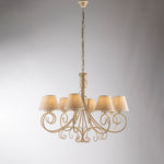 Lustre fer ivoire doré huit lumières abat-jour effet tissu 78x h63 cm