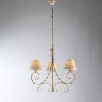 Fer Ivoire Or lustre trois lumières effet tissu abat-jour 52x h58 cm
