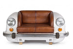 Canapé de Voute Vintage AVEC Phares Structure en bois de manguier châssis en acier. Doublure en Vérétable Cuir de Buffle. Poisqu'il s'agit d'une carrosserie d'origine, chaque modèle peut varier danse de Petits details de construction....