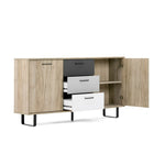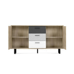 Buffet 2 portes 3 tiroirs colorés chêne gris 160x35xh.86 cm