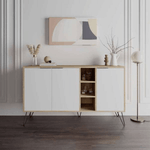 Buffet Clara en chêne 3 portes blanches 142x35,5x83h