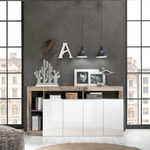 Le buffet 4 portes Mogol se caractérise par un design italien moderne. Une association de couleurs réussie avec des éléments blancs, une façade laquée brillante associée à un cadre couleur poire.