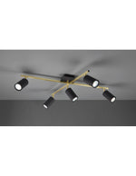 Le projecteur Spot Marley par l'éclairage trio Il a une structure métallique composée de baguettes linéaires à double or et de 5 projecteurs cylindriques d'origine noire.