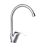 Mélangeur de cuisine avec bec haut orientable et cartouche de 35 mm de diamètre. Fabriqué en laiton avec une finition chromée brillante, il a une hauteur de 290 mm et une profondeur de 220 mm.