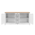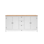 Buffet mobile 4 portes 3 tiroirs blanc avec plateau en chêne 180x40xh.90 cm