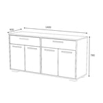 Buffet polyvalent avec quatre portes et deux tiroirs Chêne Blanc TRUVA 140x40x h78 cm
