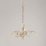 Lustre en fer Ivoire Or Blanc Ambre verres trois lumières 58x h43 cm
