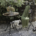 Fabriqué en métal peint avec un motif en mosaïque sur les dossiers.