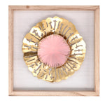Peinture métal fleur avec cadre doré cm25x25h3,5
