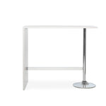 Table péninsule rectangulaire avec pied chromé. Le modèle Party offre une touche contemporaine à toute salle à manger ou cuisine. Le plateau blanc brillant avec pied chromé offre soutien et stabilité. Cette table basse convient à tout espace contemporain et est réalisée en tôle mélaminée d'une épaisseur de 25 mm. Le panneau supérieur et latéral est blanc brillant. Le pied est équipé d'une base et d'un repose-pieds en métal chromé. Les dimensions sont les suivantes : largeur 120 cm, hauteur 105 cm, profondeur 60 cm. Nos produits sont fabriqués à partir de mélamine de haute qualité. L'article est livré dans un kit à assembler.