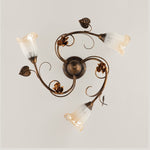 Plafonnier en fer Marron Or avec verres Ambre Blanc trois lumières 58x h15 cm