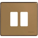 Plaque de recouvrement en aluminium couleur bronze 2 postes pour boîte ronde