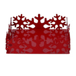 Porte-serviettes carré rouge flocon de neige en métal 16,5x16,5h5 cm