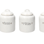 Bocal Avec Couvercle 1600 Cc Amour Grès Blanc