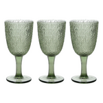 Le set de 3 verres vert Davor est parfait pour déguster un bon vin, mettant en valeur votre mise en place avec classe et élégance, grâce à la forme de la matière et à l'effet lumineux des décors en relief sur fond ambré.