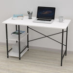 Le bureau Rimi avec 2 étagères blanches est fabriqué avec des matériaux de haute qualité, garantissant durabilité et résistance dans le temps. Les deux étagères offrent suffisamment d'espace pour placer votre ordinateur, vos documents et autres objets essentiels à votre travail.