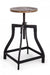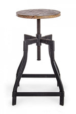 Structure d'acier. Siège pivotant en bois de manguier réglable en hauteur. Dimensions = Ø35a - 48/70h