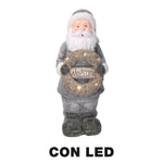 Père Noël en résine LED avec guirlande grise 21,5x19,5h51 cm
