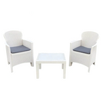 Bel ensemble de jardin et balcon en polypropylène effet rotin. Composé de deux fauteuils avec coussins et table basse. Matière : Polypropylène effet rotin Utilisation extérieure : Résistant aux agents atmosphériques / moisissures / smog / poussière. Ne convient pas à un usage professionnel.Quantité : salon de balcon 3 pièces.Dimensions fauteuil 60 x 58 x 89 cm.Dimensions table basse 59 x 46 x 40 cm.
