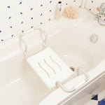 Siège de baignoire réglable en acier chromé de couleur blanche pour les personnes à mobilité réduite.
