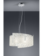 La suspension SIGNA par Trio Lighting se compose d'une rosace ronde et d'un diffuseur composé de 3 verres blancs décorés de signatures.