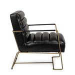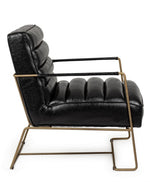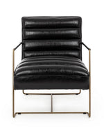 Fauteuil avec structure en acier peint et assise recouverte de simili cuir noir