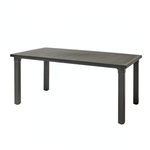 Table en technopolymère avec plateau effet lattes. Facile d'entretien et de nettoyage, elle trouve sa place dans le jardin, au bord de la piscine, sur la terrasse et partout où vous souhaitez recevoir amis et proches dans des espaces ouverts. Equipé d'un trou pour un parapluie.