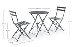 Salon de jardin Bistrot Anthracite table et chaises bizzotto Acier traité pour l'extérieur (e-coating) et thermolaqué (polyester) avec finition mate. Pliant. Dimensions de la chaise 41 x 45x - 80h cm Dimensions de la table...
