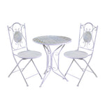 Table en fer forgé avec mosaïque et chaises