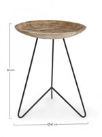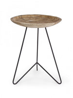 plateau en racines de teck avec finition naturelle, pieds en acier enduit de poudre époxy.