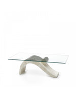 MATÉRIAUX : Dessus : Verre trempé bord poli Pieds / Base : Pierre fossile d'agate blanche Pieds Structure : Contreplaqué marine