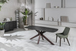 Fabriquée avec un plateau en céramique de marbre noir et des pieds en noyer massif, cette table offre une combinaison de style et de durabilité. La céramique en marbre noir donne à la table un aspect luxueux, tandis que le noyer massif ajoute chaleur et caractère.