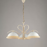 Lustre en fer ivoire doré trois lumières verres blancs et ambrés 68x h43 cm