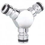 Le séparateur de tuyaux en métal avec raccords automatiques est parfait pour diviser la ligne d'irrigation et amener l'eau à deux points différents. Les longueurs de tuyau sont connectées avec des raccords automatiques aux extrémités. Fabriqué en laiton chromé pour assurer solidité et résistance dans le temps. Compatible avec le système de raccord rapide Quick-Click qui lui permet d'être utilisé avec toute la gamme Metal-Jet et les raccords en plastique.
