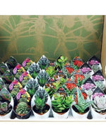 Mélange de plantes grasses et succulentes en pots de 5,5 cm de diamètre.