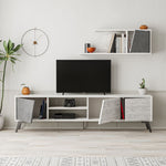 Meuble TV Vintage Fiona Blanc avec Porte Grise et Étagère