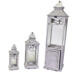 Lanterne Bois Métal 1er Blanchi C/Porte Rectangulaire Cm16,5X16,5H42,5